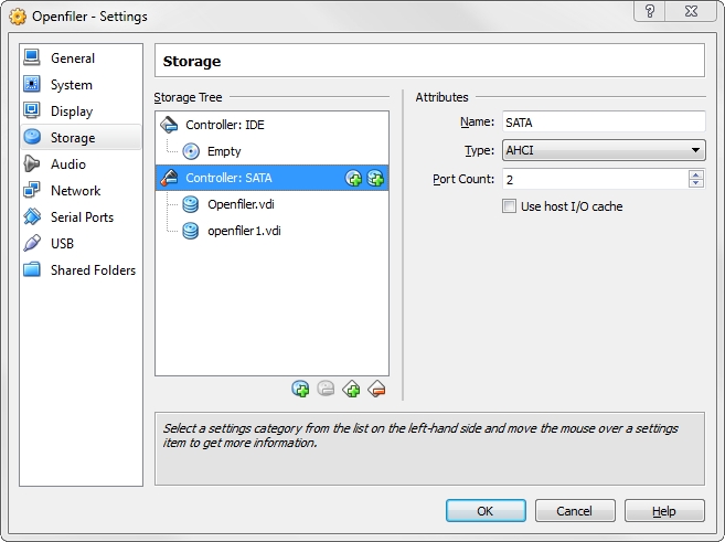 For shared storage to be effective there needs to be some storage to share. When I installed Openfiler I used all of the virtual hard drive assigned to the VM for the operating system installation, leaving none that could be shared between the systems that will eventually connect to the Openfiler server.