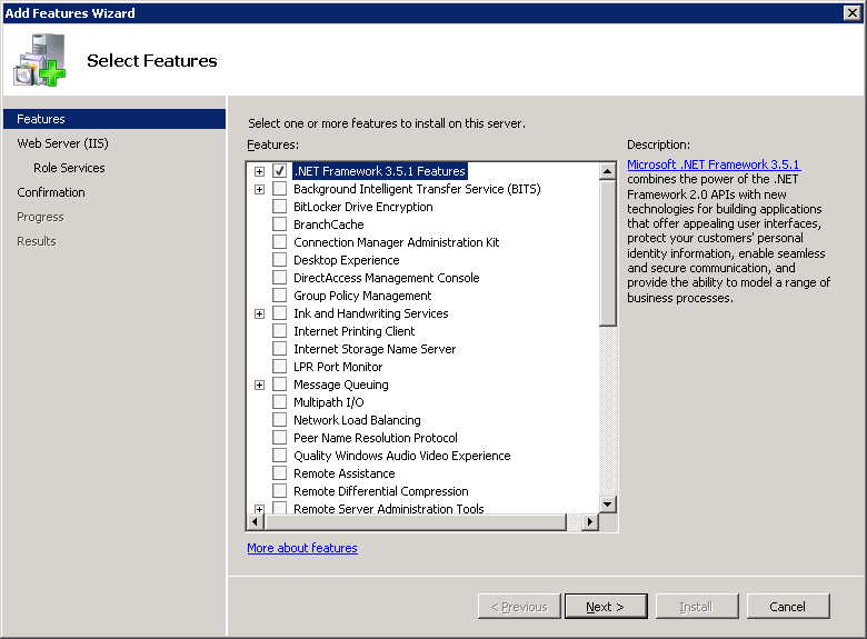 Installing all .Net components on Windows 2008 triggers the installation of certain prerequisites including the IIS Web Server, this would be necessary for environments where AX components like the Enterprise Portal were being migrated.