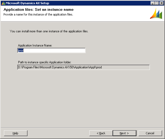 As more than one instance of AX2009 can be installed on a single server it is necessary to provide a name for the instance being installed. For data migrations the name provided for the AX instance should be the same as the instance being migrated. Ensure that the path to the instance specific application folder is the same as that for the instance being migrated (note that the drive letter can be different, but it is advisable to keep as much of the directory structure the same between the two instances as possible).