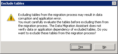Check the list of tables that will be excluded from the migration. Ensure the list is as expected.