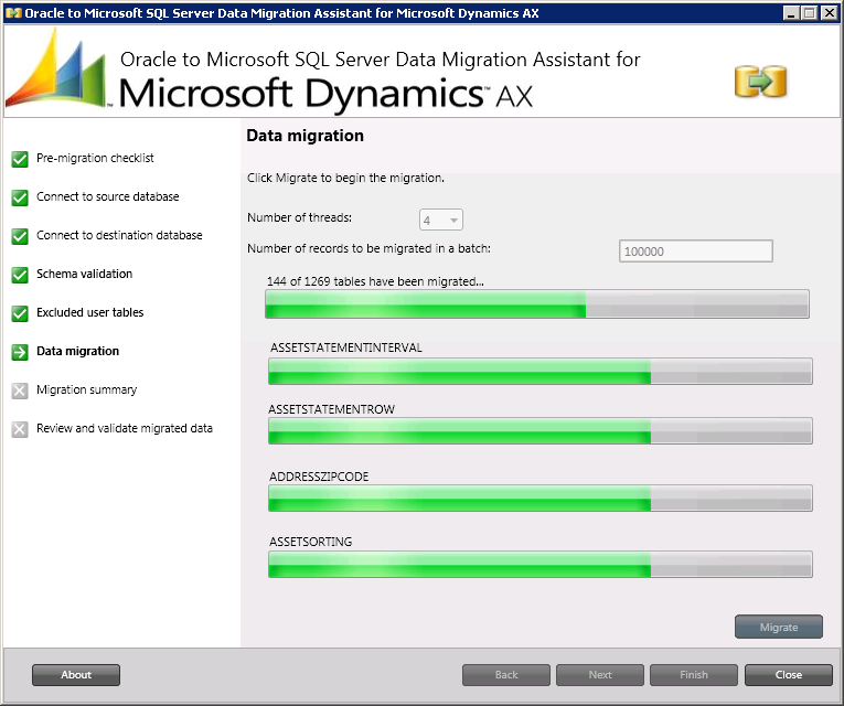Set the number of threads (depending on the number of CPU cores available) and the number of records to be processed in each batch. Click “migrate” to start the migration.